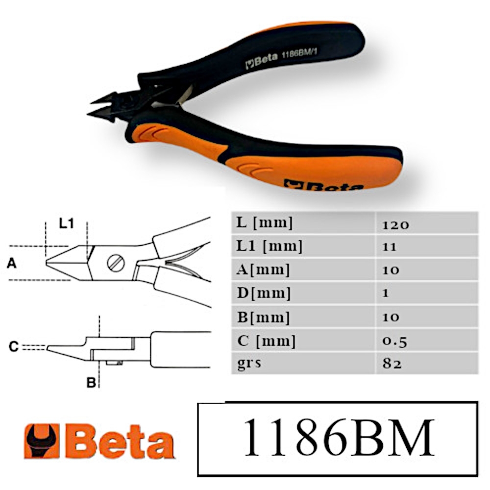 Pince coupante diagonale de précision BETA 1186BM/1, à bec effilé, avec dégagement, coupe à ras, longueur 11mm, branches gainées confort bi-matières