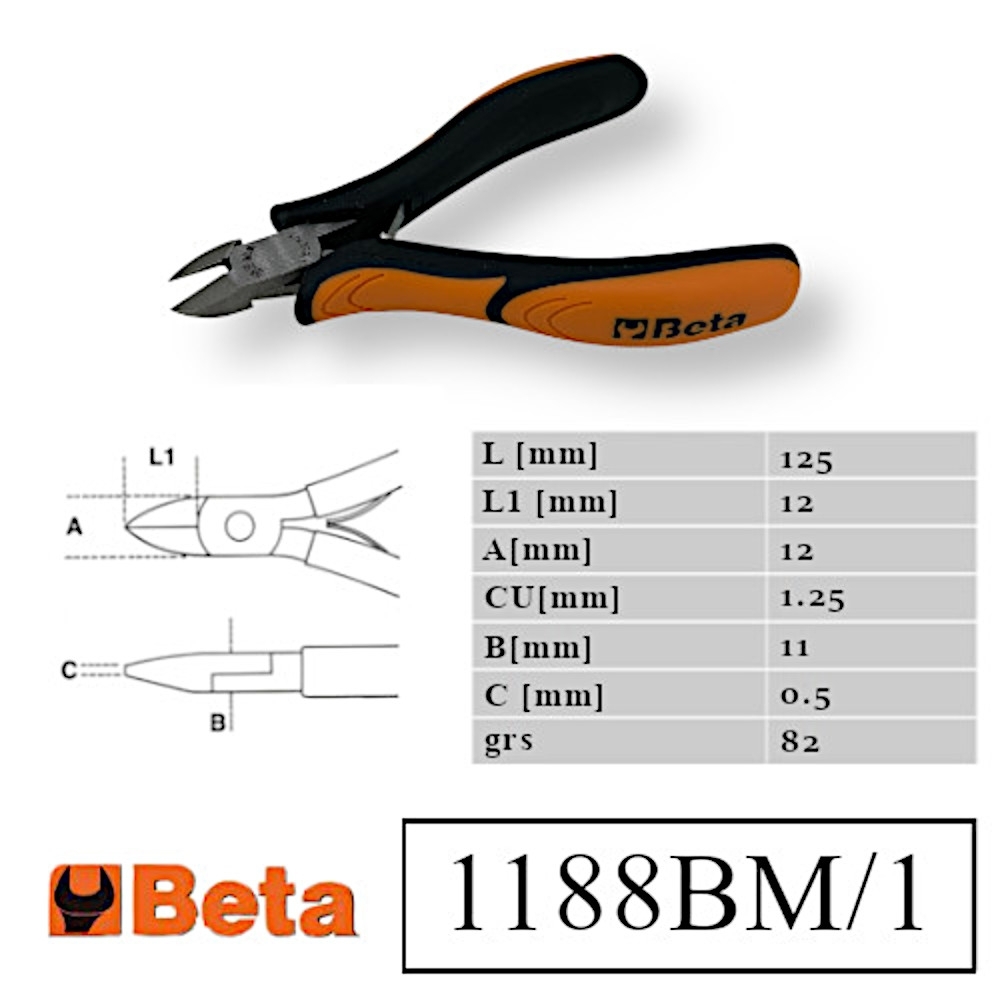 Pince coupante diagonale de précision BETA 1188BM/1, coupe axiale, longueur 12mm, branches gainées confort bi-matières
